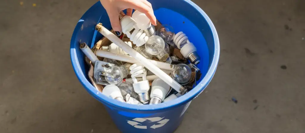 Descarte de lâmpadas evita contaminação ambiental por meio de coleta e reciclagem.